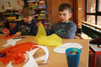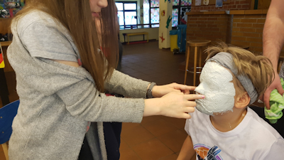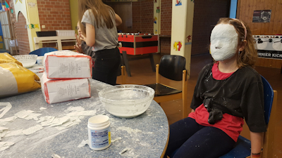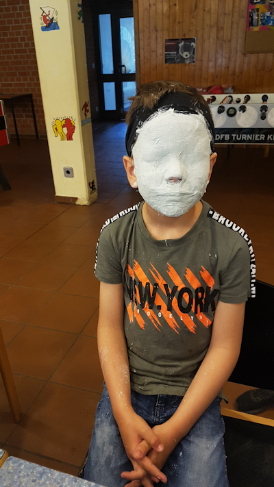 Osterferienprogramm und sorgten für eine gute Stimmung. Highlight in diesem Jahr war die Nachtwanderung durch den Südpark. Nachdem das Riesenosterei gefunden wurde, übernachteten die Kinder im Jugendhaus. In der 2. Ferienwoche fand ein kreativer Maskenworkshop statt, der von Frau Dicketmüller geleitet und von unseren Honorarkräften pädagogisch begleitet wurde. |